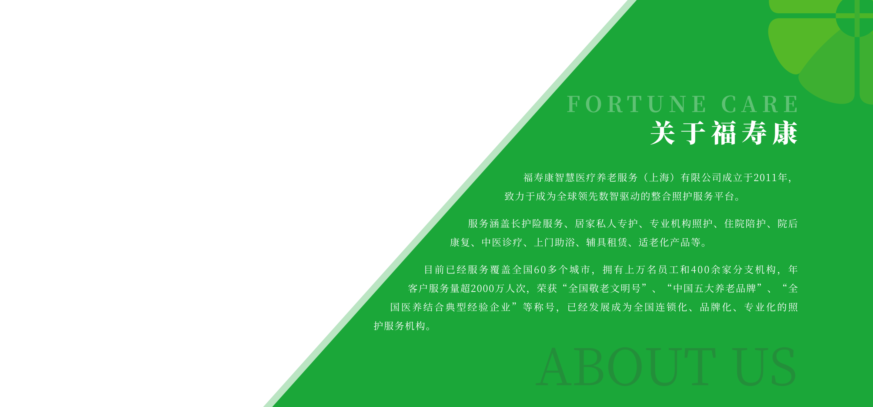 我们将紧跟社会发展需求,以客户为中心,以员工为基石,以社会为己任,坚持创新,践行公益。紧紧围绕居家、社区、机构等不同场景下长者实际需求,研发更有价值的康养产品,搭建智慧养老服务平台,不断对产品和服务进行新的思考与复盘,在乌卡(vuca)时代中找到为养老行业服务的确定性。